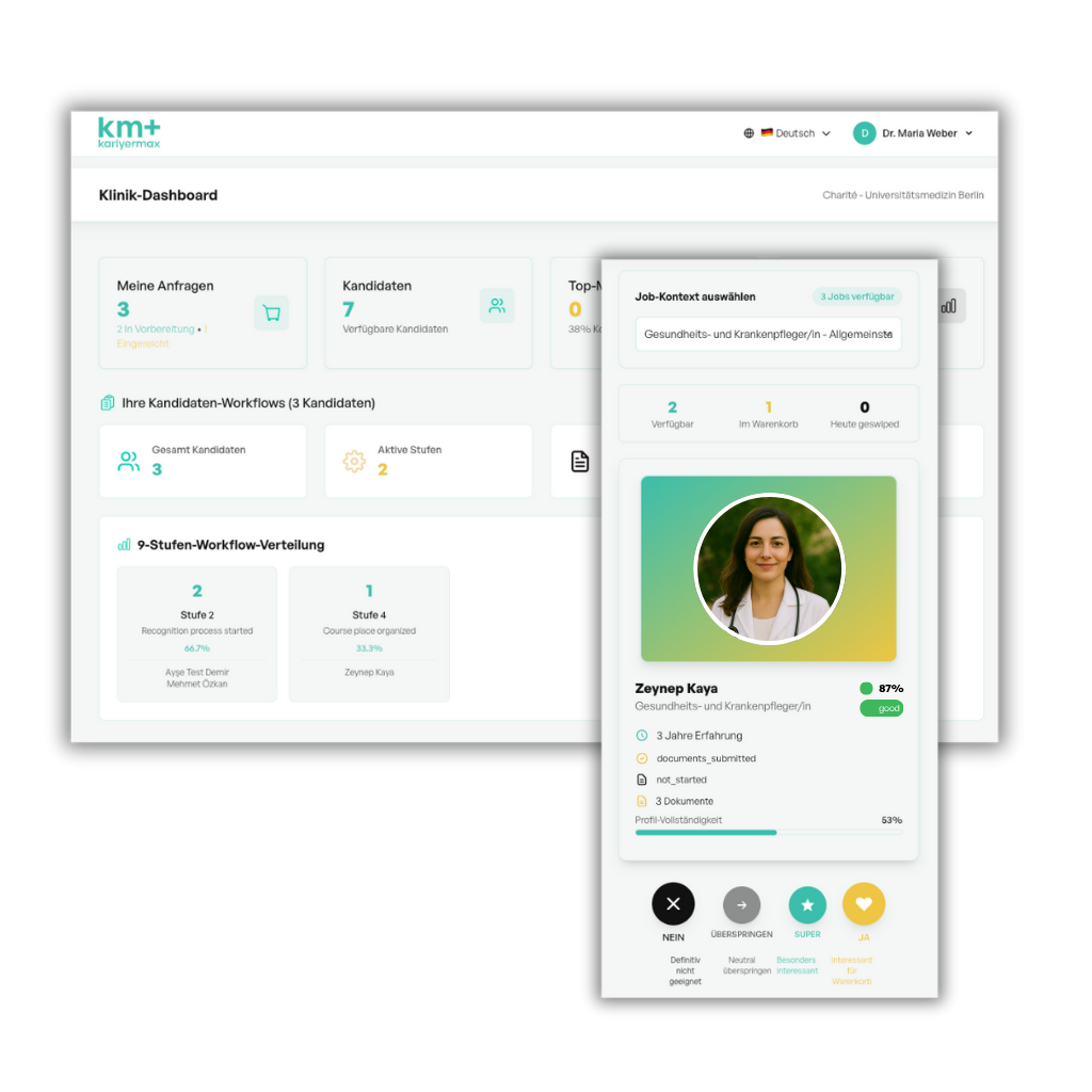 Wir begleiten den gesamten Anerkennungsprozess in enger Abstimmung mit Behörden, Sprachschulen und Kliniken. Alle Abläufe sind strukturiert, digitalisiert und durchdacht – Sie müssen keine Einzelfälle managen.